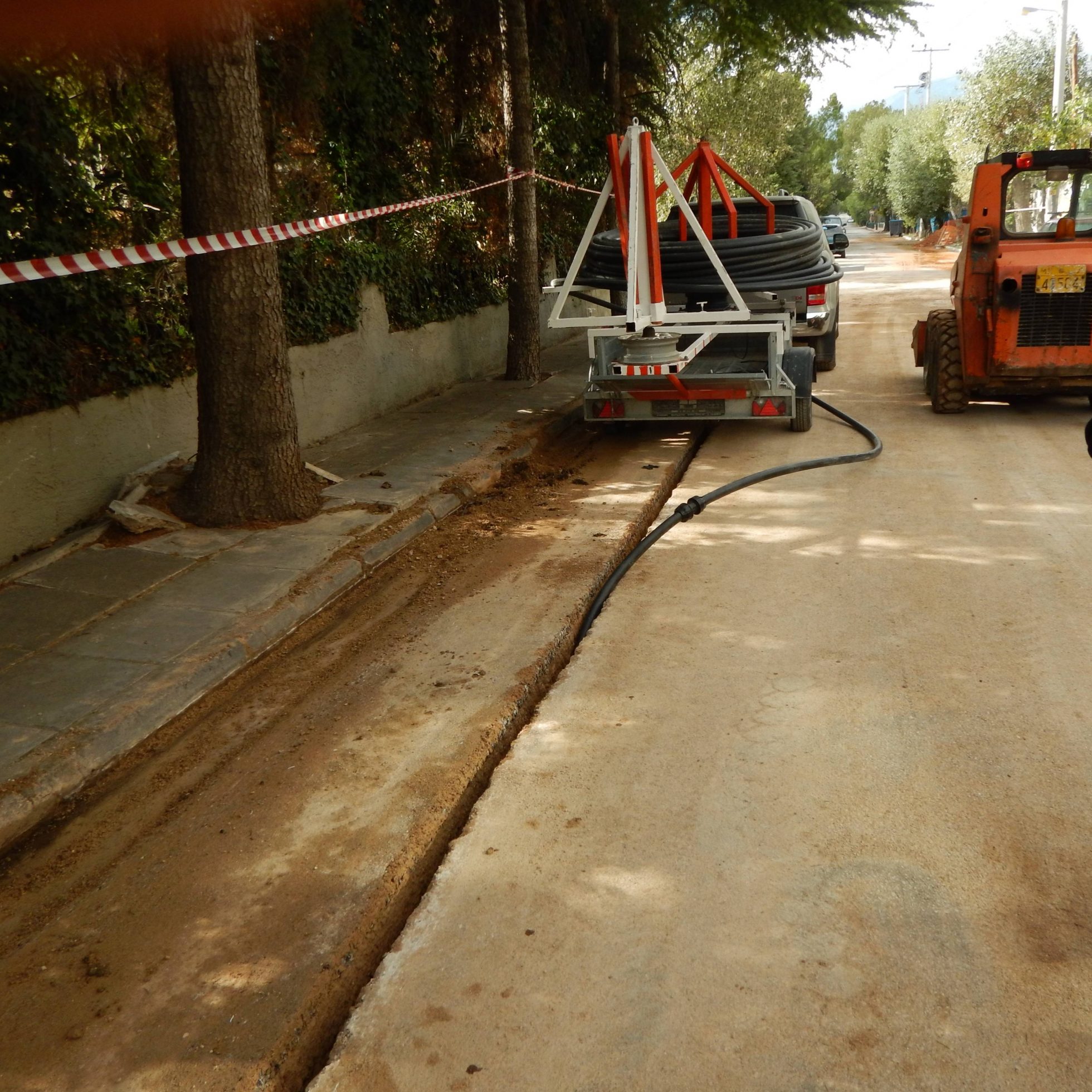 Εγκατάσταση οπτικής ίνας σε νέα και υφιστάμενη μικροτάφρο, με σκοπό την διασύνδεση (ζεύξη) του κτιρίου της COSMOTE TV με το ΑΚ Κηφισιάς και το Μέγαρο του ΟΤΕ. Για την υλοποίηση εκτελέστηκαν εργασίες micro trenching και εμπλουτισμού, συνολικού μήκους περίπου 8.5Km, σε συνδυασμό με δικτυακές εργασίες αποκατάστασης της συνέχειας των οπτικών ινών και τερματισμού. Παράλληλα με την πορεία των εργασιών κατασκευής εκπονούνταν και η τοπογραφική αποτύπωση της όδευσης. Λαμβάνοντας υπόψη την σπουδαιότητα των κτιρίων προς διασύνδεση, το έμπειρο προσωπικό της εταιρείας μας υπό την καθοδήγηση ικανών μηχανικών πεδίου, διαχειρίστηκε αποτελεσματικά τον χρόνο, τις όποιες αντιξοότητες παρουσιάστηκαν και τις δυνατότητες που παρέχει ο μηχανικός εξοπλισμός, εξασφαλίζοντας υψηλού επιπέδου αποτέλεσμα, εντός του προβλεπόμενου χρονοδιαγράμματος.